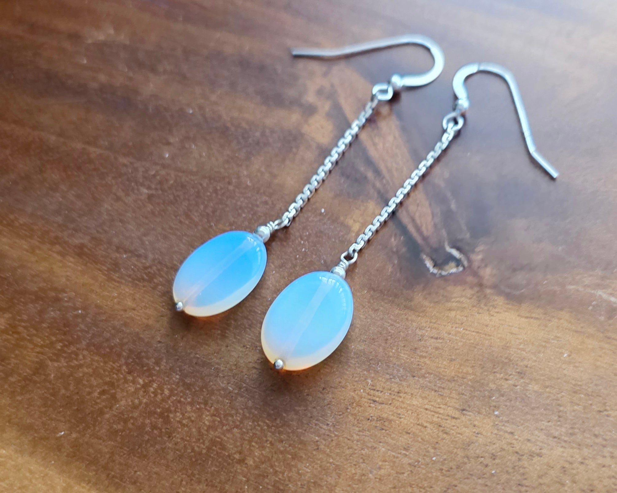 Long Sparkly Opalite Three Stone Dangle Earrings