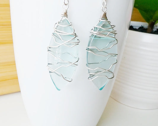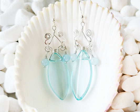 Long Art Deco Inspired Turquoise and Pearl Dangle Earrings