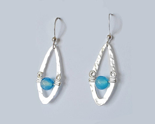 Celtic Inspired Blue Banded Agate Harmony Wing Earrings