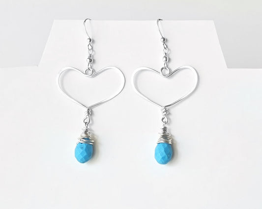 Large Heart Turquoise Howlite Dangle Earrings-new