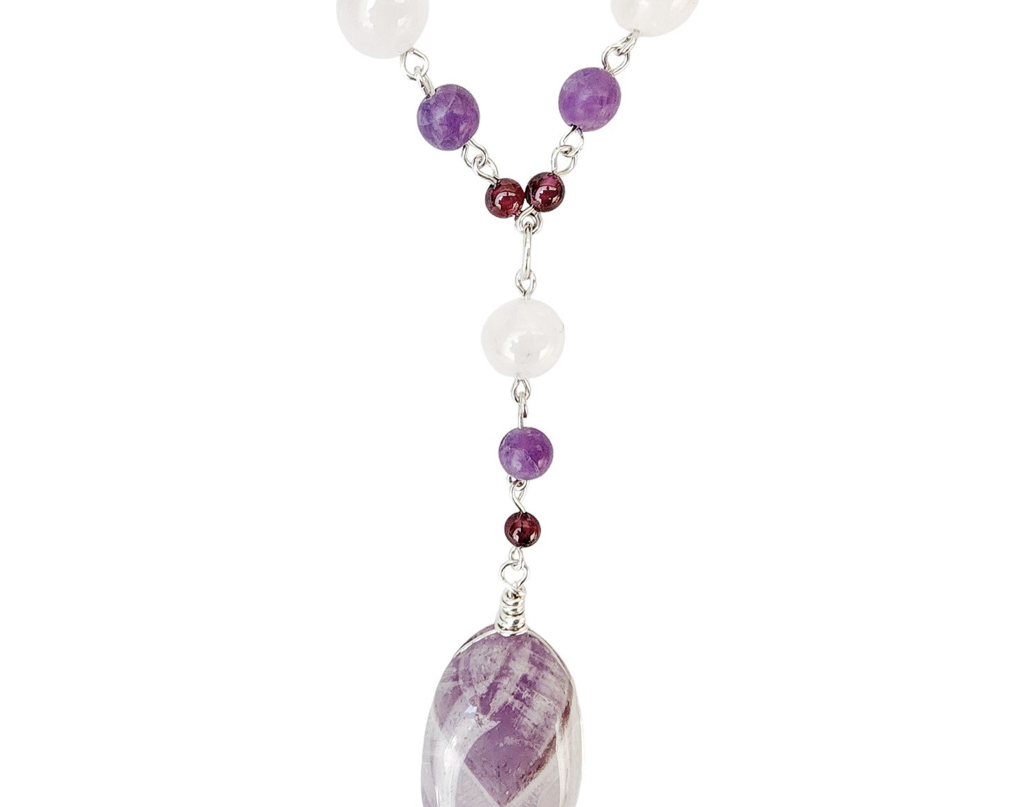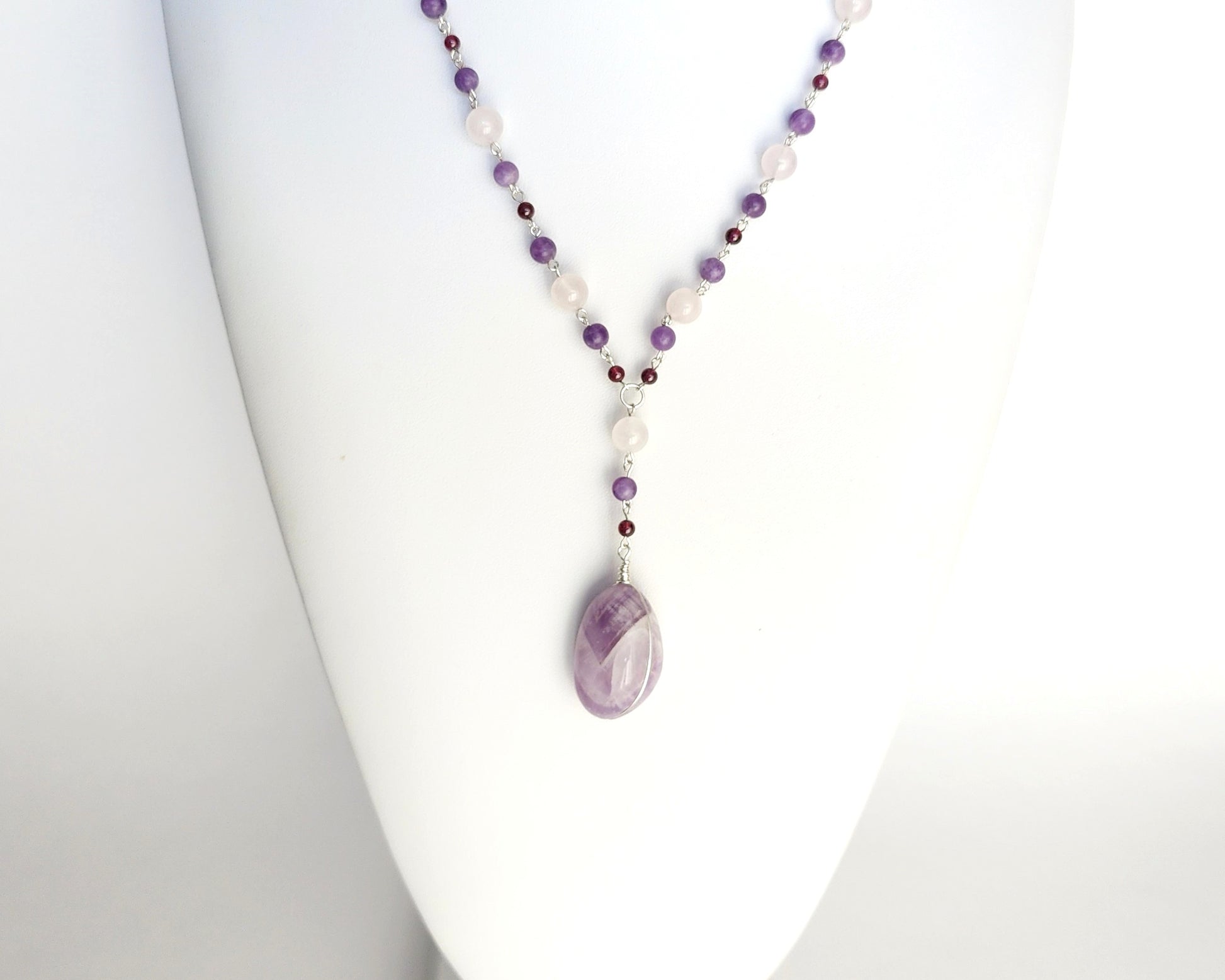 Art Deco Style Eco Amethyst Garnet Rose Quartz Necklace