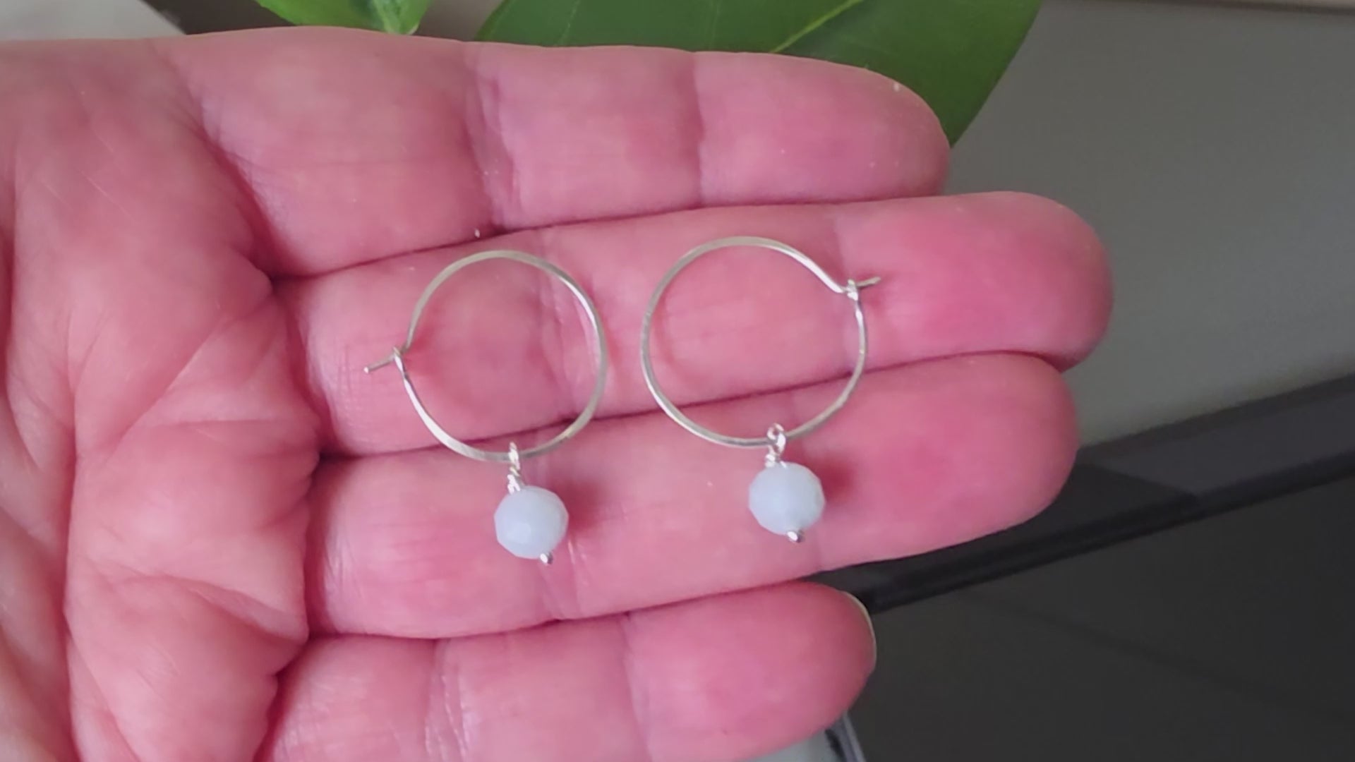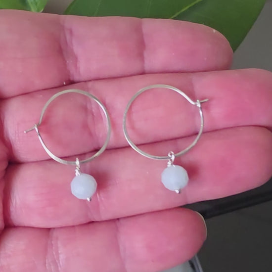 Handmade convertible Aquamarine Hoop Dangle earrings, wear them as minimalist hoops without the Aquamarine dangles or slip on the little Aquamarine pendants to create dangle hoop earrings.