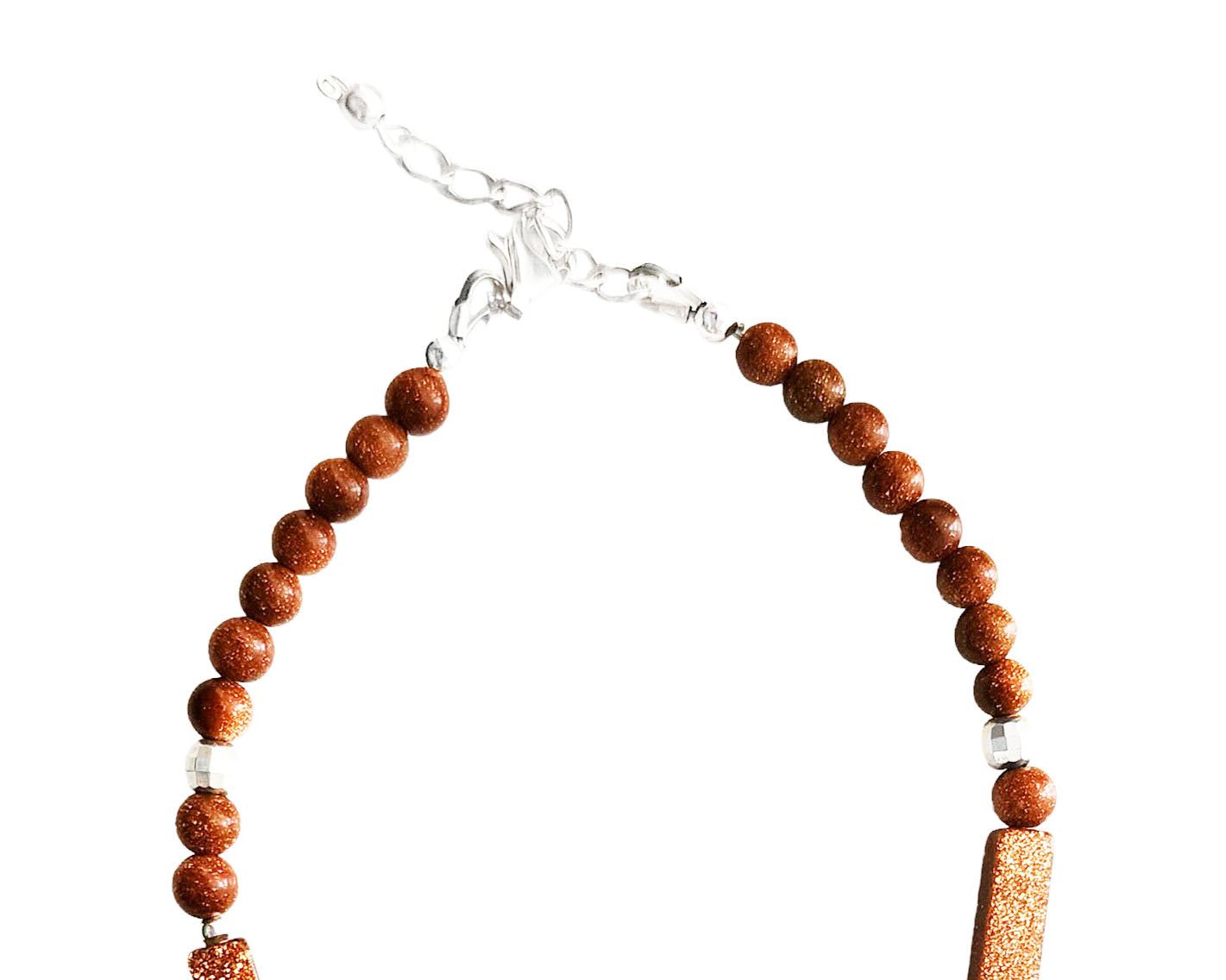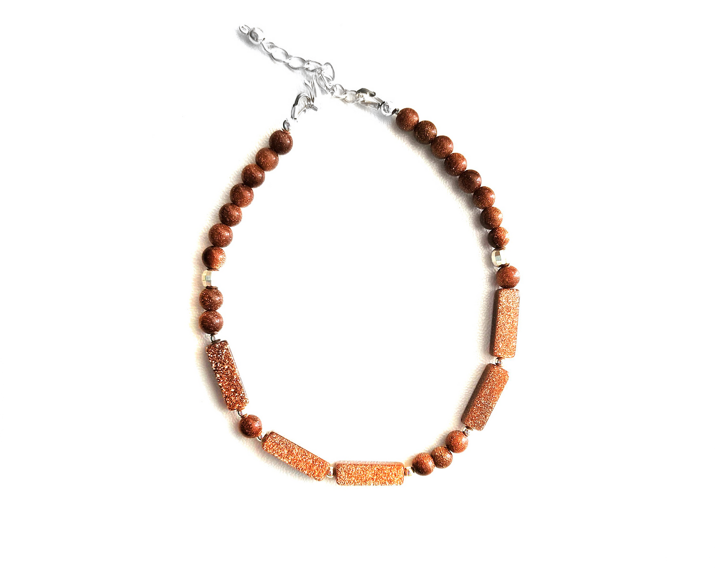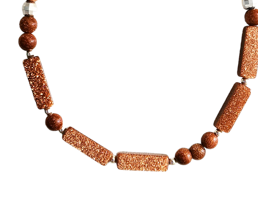 The almost vintage Gold Stone beads are stunning; they are a reddish-brown color with thousands of tiny golden sparkles.