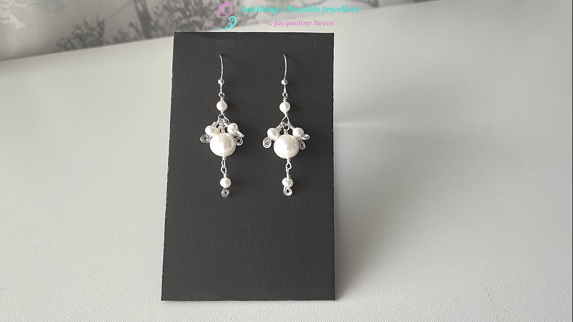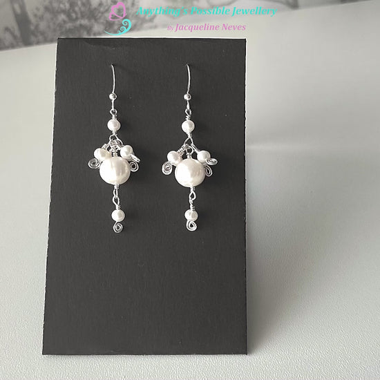 STYLE: Bridal, Celtic, Long Pearl Dangle Earrings, Pearl Cluster Earrings