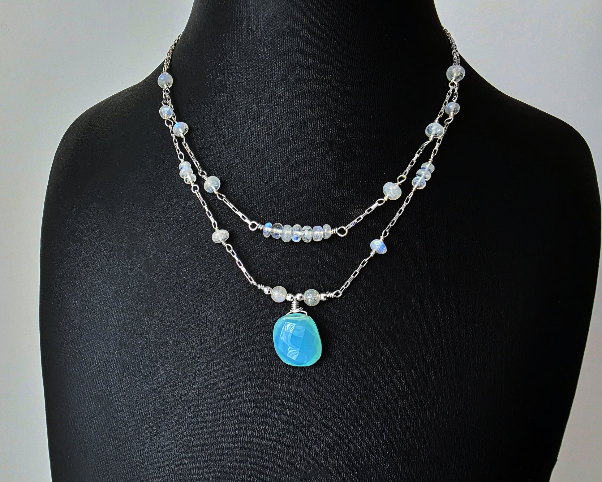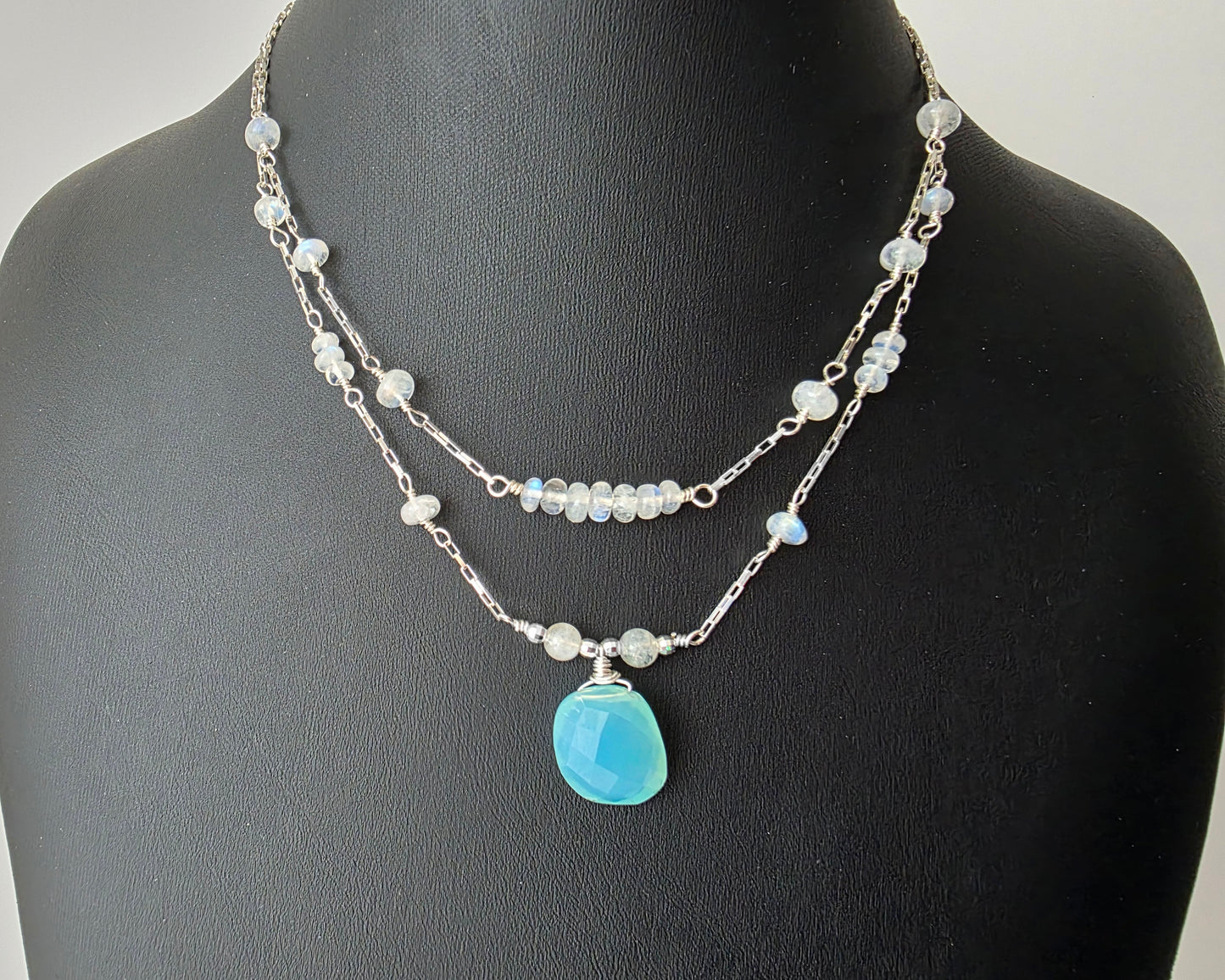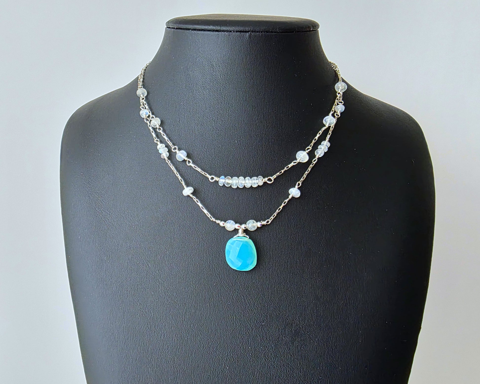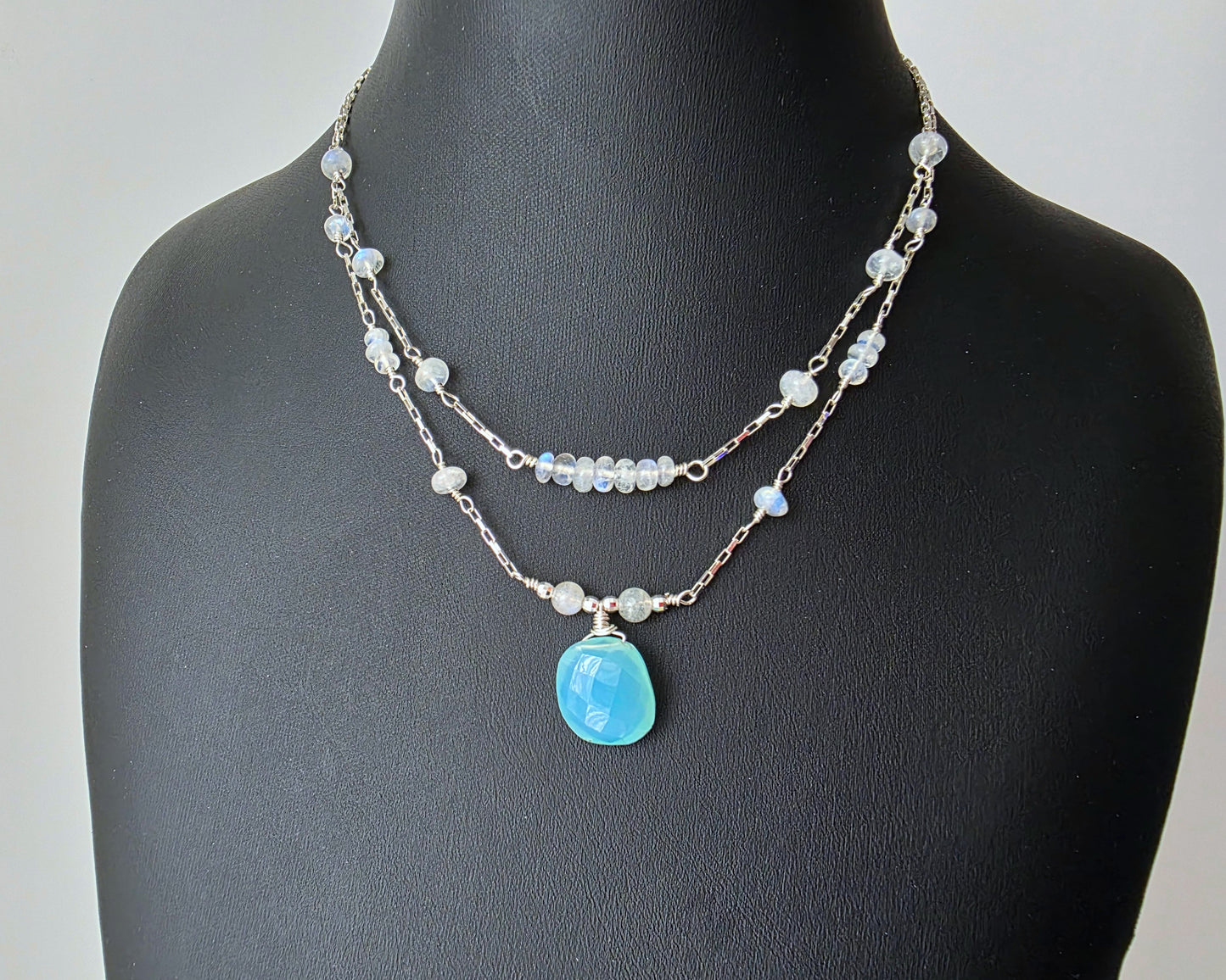 Harmony Aqua Blue Chalcedony Moonstone Double Strand Necklace