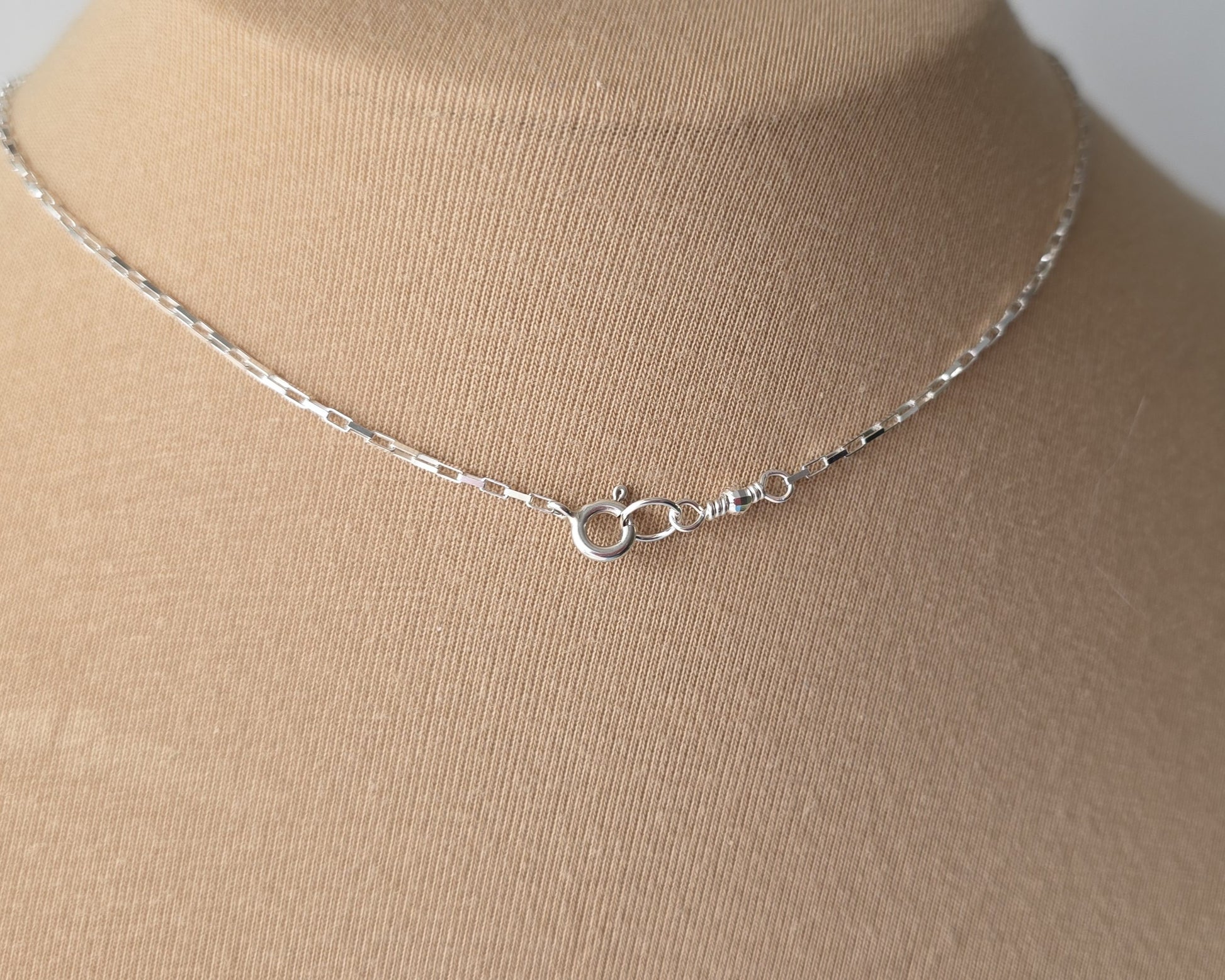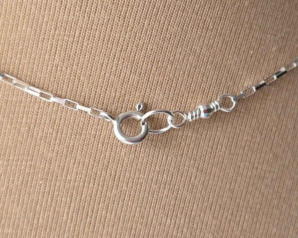 The necklace fasten with a spring ring clasp and the end has a wire wrapped beaded loop with another sparkly faceted Sterling Silver Bead.
