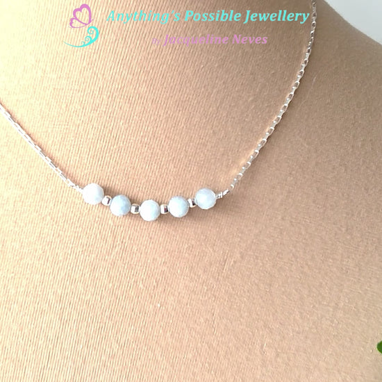 The pale blue Aquamarine are opaque and very pretty (5 x 6mm round stone), they look amazing with the sparkly faceted Sterling Silver beads in-between the stones (4 x 3mm).