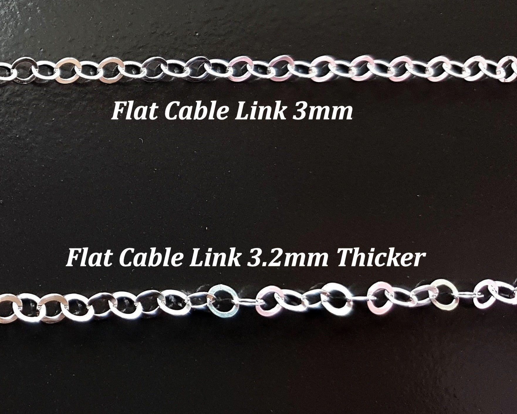 The chain in the photo is 3.2mm. You can choose two sizes of chain, a 3mm round link or the 3.2mm link. The 3mm is perfect for Anklets, a good size and you can also order the 3.2mm link, it is slightly wider, but it is also twice as thick and stronger. The 3.2mm chain is perfect for adjustable Bracelets and Anklets, the lobster claw clasp and fasten to any of the links in the Anklet making it an adjustable anklet.