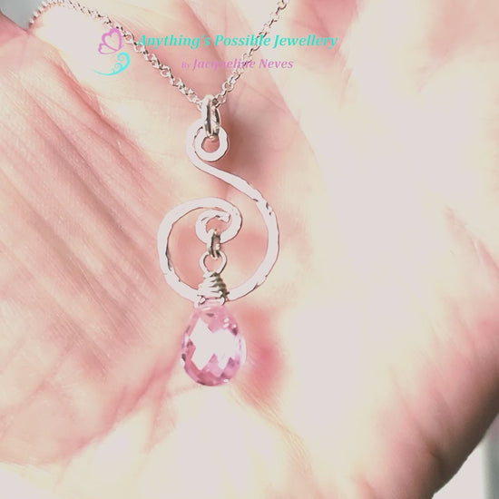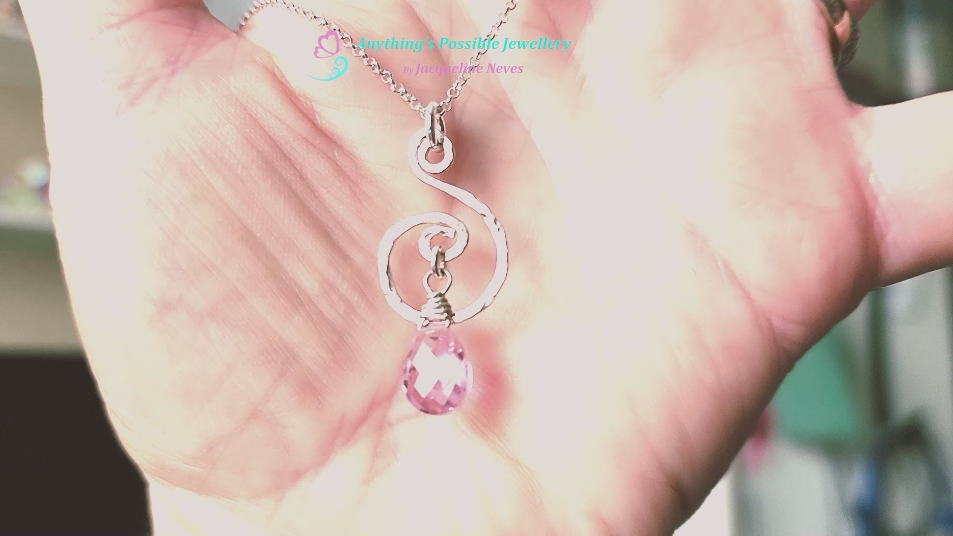 This lively, feminine pendant is inspired by light sparkling on the water, the movement of the waves and the pink represents healing.